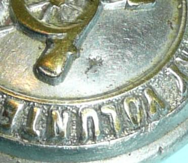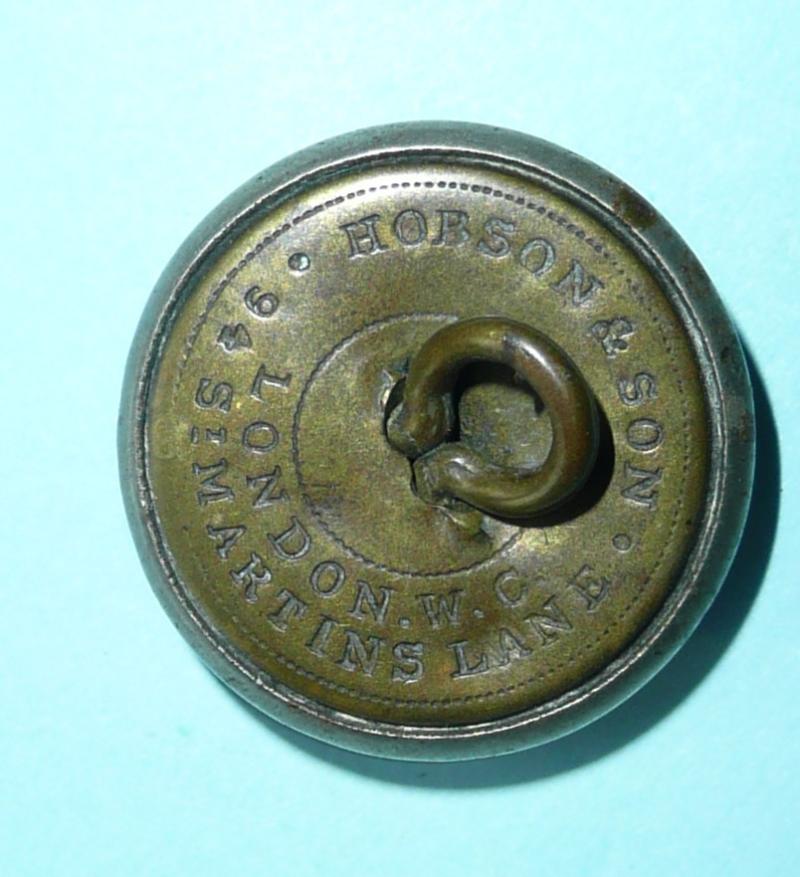 Circa 23mm in diameter, floating shank, maker marked Hobson & Son, St Martins Lane, London, W.C. In worn condition with a small ding above the end of the barrel and some wear to nickel plated finish on the highpoints of the cannon. Scarce pre 1902 button as on 1 January 1902 the unit was re-titled 1st City of London Royal Garrison Artillery (Volunteers). Worn 1883 - 1902.