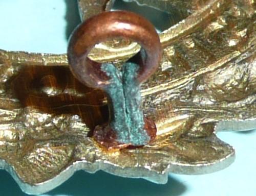 Die struck with two loops to reverse (some verdigris to these) otherwise in very good condition with sharp detail. Circa 58mm tall.