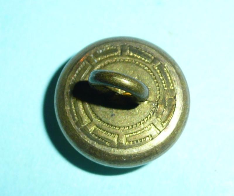 Circa 14mm in diameter, fixed shank, Greek key pattern to reverse. Gilt bright. Much better than my photo suggests. Comm GrSt