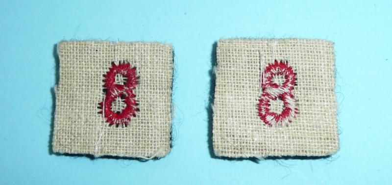 A matching pair, red on blue, circa 20mm square. In unissued condition. Happy to be corrected. Comm Pali