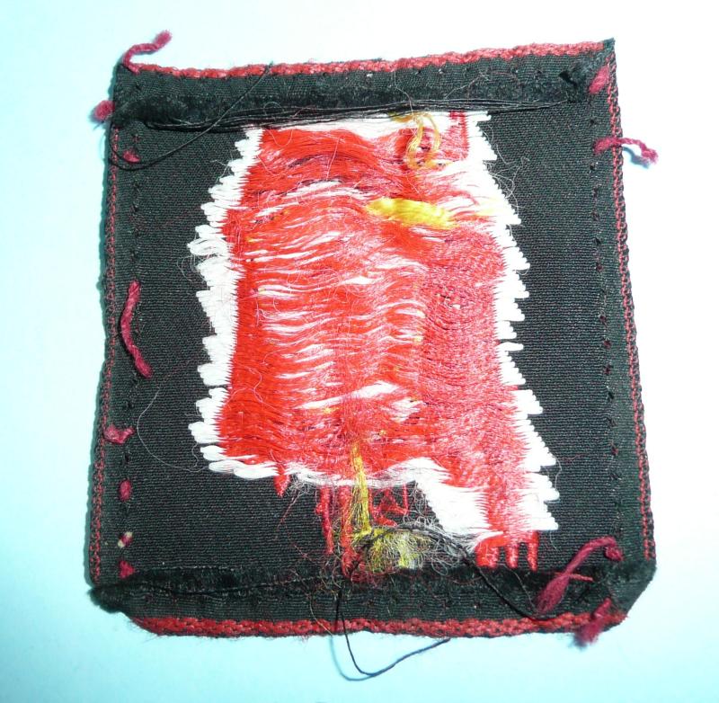 A 1970s era silk woven example of the head of a Native American medicine man on a red background. Worn by British troops at the Batas Training Centre in Suffield Canada. Worn in facing pairs, this one facing to the right. Removed from uniform with some wear. Been there and done that condition. Scarce.