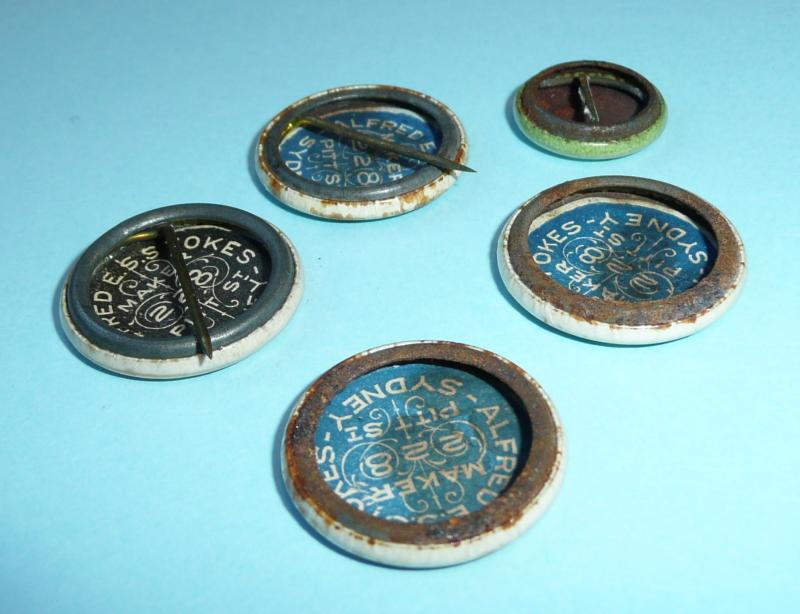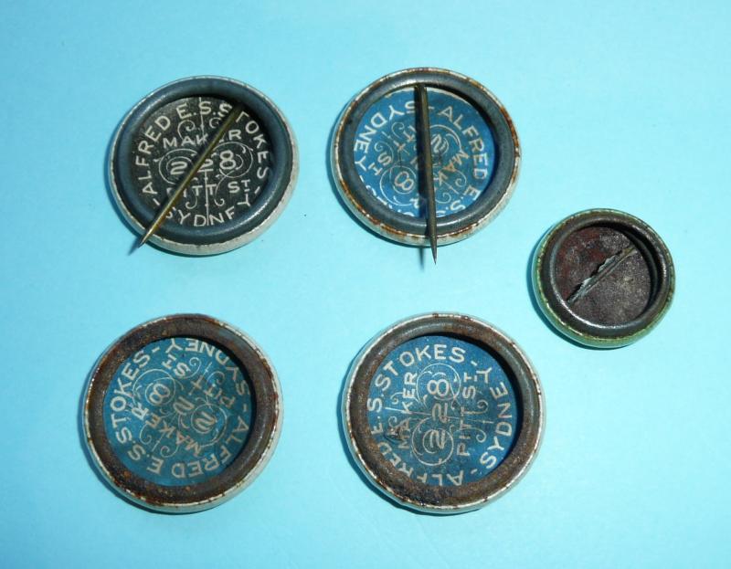 WW1 Australian Tasmanian Patriotic Fund Raising Tinnies Pin Badges - x 5 Different patterns - Lot 3