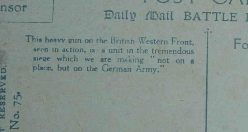 WW1 Daily Mail Series 10, Postcard No 75 - A British Heavy Gun in Action