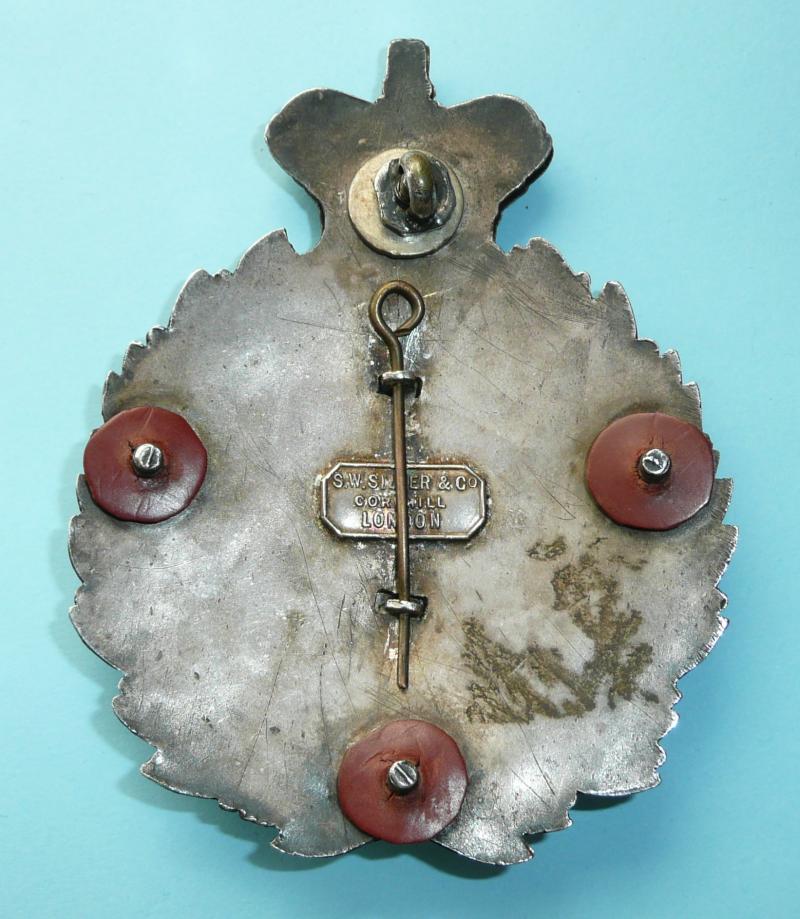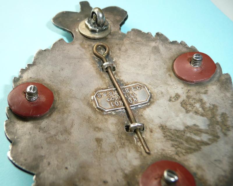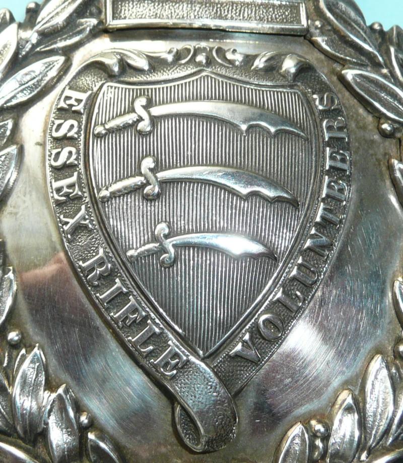 A very fine unmarked silver belt plate with four original screw posts and back plate. One original washer and retaining nut remaining, others held in place by fibre washers. Maker's tablet to reverse of plate 'S.W. Silver & Co / Cornhill / London. In superb condition and with sharp detail. Circa 1860 - 1883, when the Rifle Volunteer Companies were formed into Volunteer Battalions. This is a generic plate which could have been worn by any other the Essex Rifle Volunteer Companies, of which there were many.