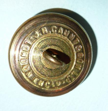 Circa 25mm in diameter, fixed shank and backmarked JR Gaunt & Son Ltd, London Engld. A bright gilt button in fabulous condition for age. Worn 1902 to 1920.