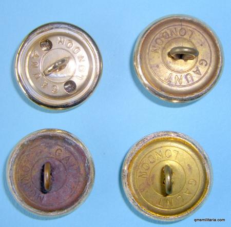 Set of 4 Queen's Crown Royal Air Force large pattern Queen Elizabeth crown anodised buttons, circa 24mm in diameter. All maker marked Gaunt London, but one back of a different pattern. Shanks and buttons in good order