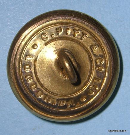 Gilt in excellent condition with King's Crown which dates it to between 1902 and 1952. Maker marked C. Pitt & Co, London, W.1. Fixed shank. Circa 25mm in diameter.