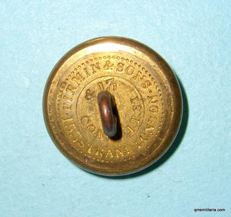 Good condition with gilt bright and fixed shank. Maker marked Firmin & Sons, 53 Strand & 13 Conduit Streets, London. Early button, 1855-1881. Circa 19mm in diameter.