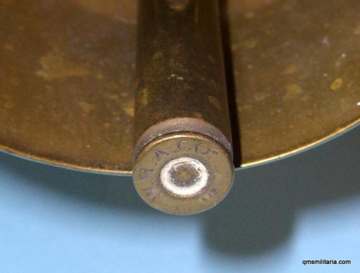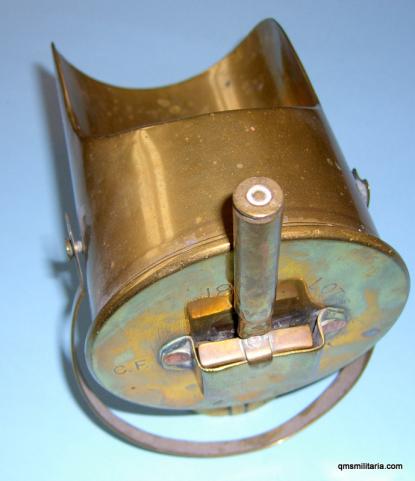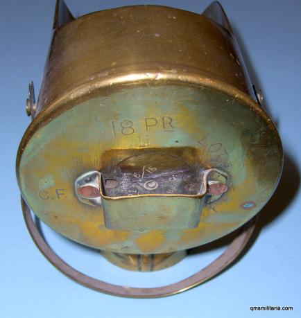 Brass 18 punder shell dated 6/15, Circa 17cm in length, circa 16cm tall including bullet and 11cm wide. Trench art item in the form of a coal skuttle with swivel handle and separate holder for a bullet, which has been converted into a shovel. Heavy item but a great piece for your harth! Will polish up nicely.