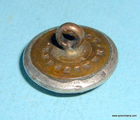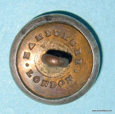 small silver plated officer's coatee button of circa 1840s vintage with scarce early maker, Hamburger, London. Fixed shank. Circa 16mm in diameter. Some wear to plate and bronze is showing through. Still, an attractive and scarce early button.