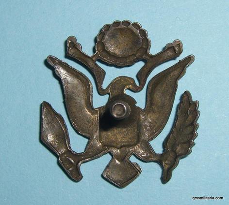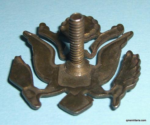 Bronze metal (once gilt finished) American Army officer's peaked visor cap badge complete with fixing post (but missing retaining nut). Otherwise in good condition.