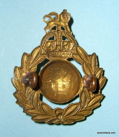 An unusual 'economy' pattern of the standard Royal Marine Cap badge, a die stamped version with a particularly flat crown. Two original lugs to reverse. In very good condition with good detail.