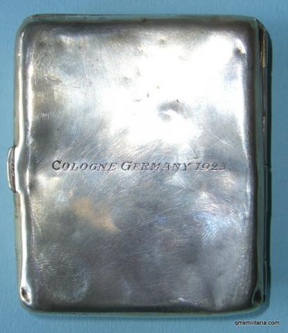 Attractively engraved, "J.McD" in top corner, 1st Battalion 5th Fusiliers and has a scroll listing the Northumberland Fusiliers battle honours up to and including the WW1. The reverse is engraved "Cologne Germany1923".