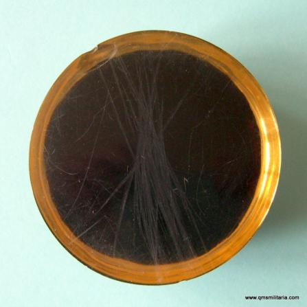 An original bi-metal cap badge professionally encased in resin against a black backing and in the shape of a paperweight. Some wear and a chip to resin to underside, which does not detract from its display from the front. Circa 7cm in diameter.