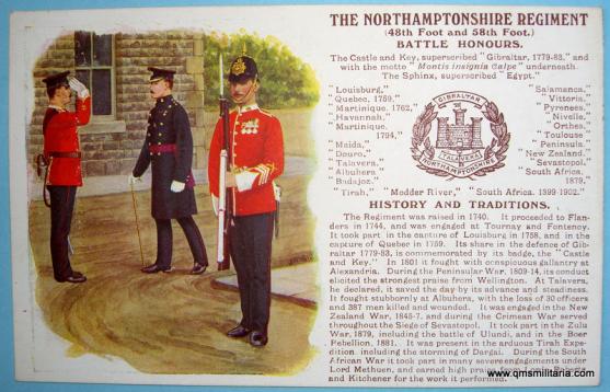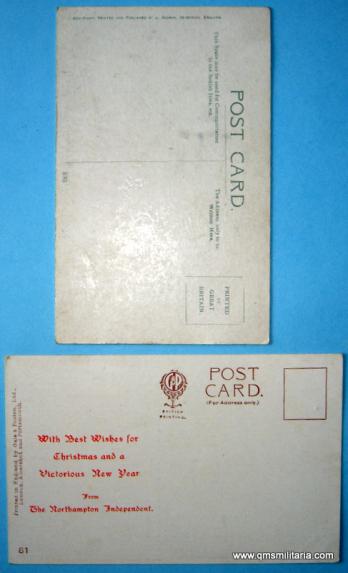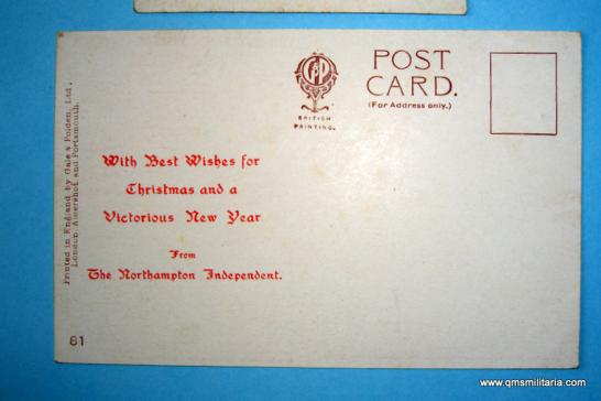 The Gale & Polden History and Traditions card has been customised by the "Northampton Independent" newspaper as a Christmas card, with the printed message "With Best Wishes for Christmas and a Victorious New Year", suggesting this was produced for Xmas 1914. Scarce.