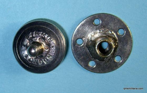 As worn on the epaulette, some minor dents to button front around the circle strap. Screw fitting with original back plate housing. Button circa 17mm in diameter. Back marked Firmin London. Generally good condition.