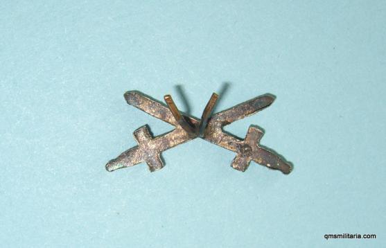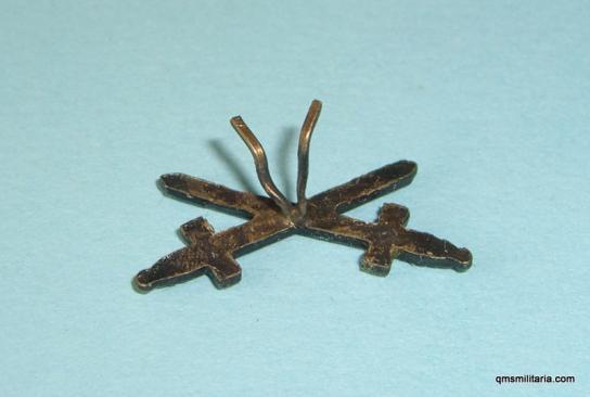 Usually worn on the ribbon bar, here we have a white metal device of Swords for Combatants as worn on the ribbon of the decoration for the KvK War Merit Cross with Swords for Combatants. It measures Circa 2.2cm across and has its original fasting prongs although has some age tarnish.