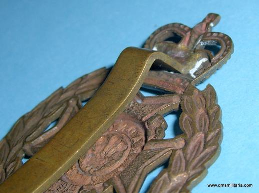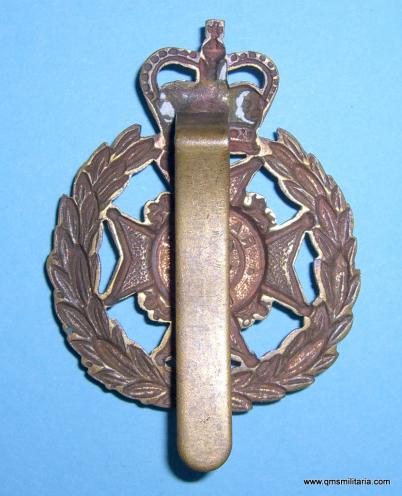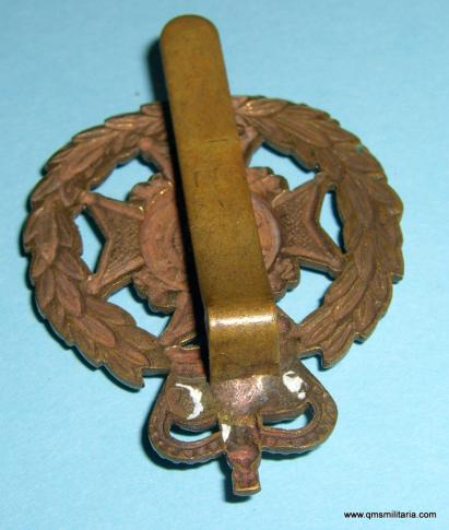 A good stiff brass badge with original slider. Queens crown denotes post 1952. Welsh Home Guard unit, 2nd phase, 1951 to 1957.