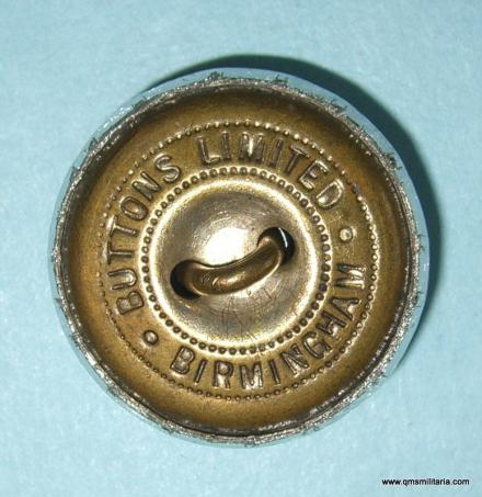 Anodised aluminum silver coloured button, circa 26mm in diameter. Floating shank. Backmarked Buttons Limited, Birmingham. Worn circa 1946 - 1959 by the regiments of the Light Infantry Brigade, which included the Durham Light Infantry ( DLI ), King's Own Yorkshire Light Infantry ( KOYLI ), King's Shropshire L.I., and the Somerset & Cornwall Light Infantry. Signs of minor service wear.