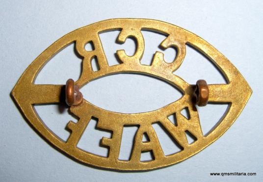 Early pattern as worn from 1901 - 1928 (the title Royal was bestowed in 1928 in view of their service against the Germans in Africa during WW1 ). A large elliptical one piece die cast shoulder title. This is a heavy quality piece, circa 5.4cm wide and 3.4cm tall. Slight misshaping to one lug. Scarce.