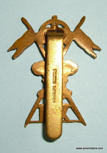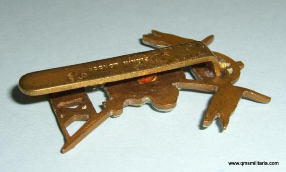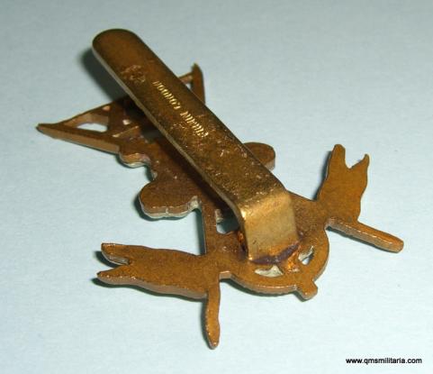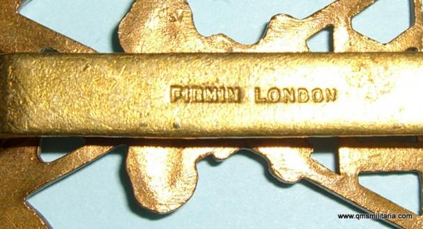 Bi-metal cap badge in good condition with original slider, maker marked Firmin London to reverse and with a sweat / braise hole behind the POW feathers. Excellent condition.
