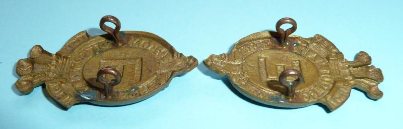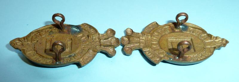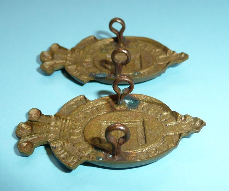 Die struck brass pair of collar badges with two original lugs to the reverse of each (touch of verdigris to reverse only). Each circa 4.4cm tall and 2.4cm wide. In excellent condition with sharp detail.
