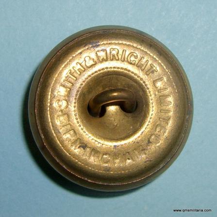Large pattern brass button, with floating shank as worn by Other Ranks. Backmarked Smith & Wright Limited, Birmingham. Slightly polished on the highpioints otherwise in good condition. Note post 1920 spelling