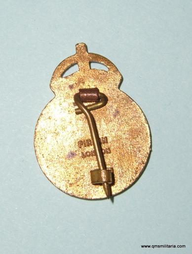 An original gilt and enamel badge, King's crown above a circlet with 'Civil Defence Corps' on blue enamel ground, enclosing the Royal Lion of England, the reverse with maker's details "Firmin London.". Very good condition, original pin fitting, no damage to the enamel. Circa 2.6cm tall.