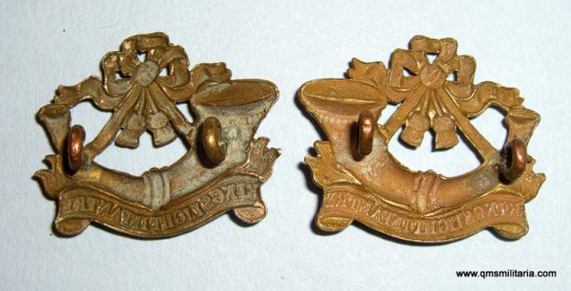 Victorian King's Shropshire Light Infantry ( KSLI ) Pair of Facing Gilding Metal Other Rank's Collar Badges, 1881 - 1887