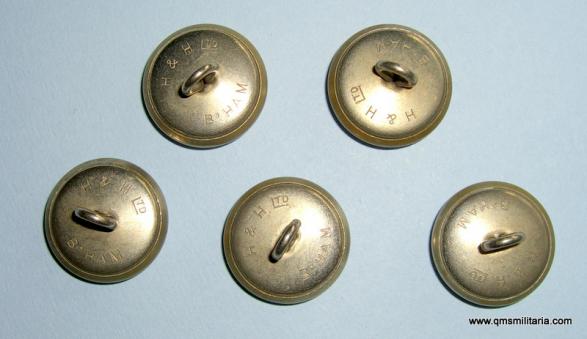 All circa 24mm in diameter, with fixed shanks and maker backmarked H&H Ltd, B'Ham. Not encountered this manufacturer before. Set of 5 in good condition.