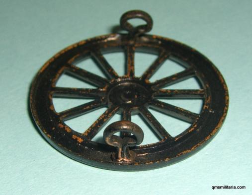 Scarce, in blackened brass with backing plate, as issued to British Army Gurkha Rifle Battalions. 3,2cm in diameter and with two original lugs. Coll.