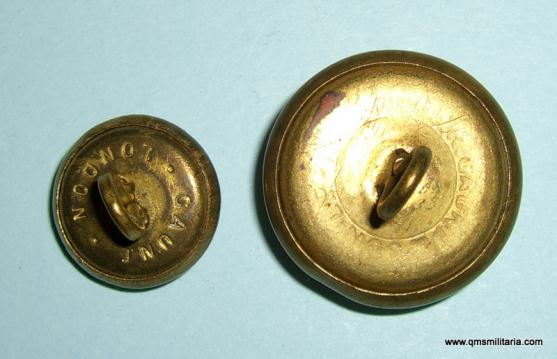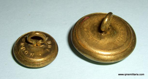 With fixed shanks, the large pattern has a blank reverse and is circa 26mm in diameter, and the medium pattern maker marked Gaunt London and is circa 18mm in diameter. Some service dings and polishing to highpoints.