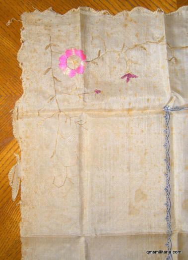 Foxed and very fragile, edges are fraying and a bit perished, but scarce item listing the battle honours for this famous regiment in the Boer War in the central panel.