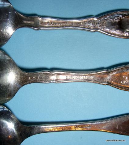 An attractive set of three spoons of 2nd Boer War vintage, one depicting Kitchener, one Roberts and the third a general army and navy design with a naval gun embossed in the bowel. In very good condition, slight wear to Roberts spoon on the underside, but an attractive item.
