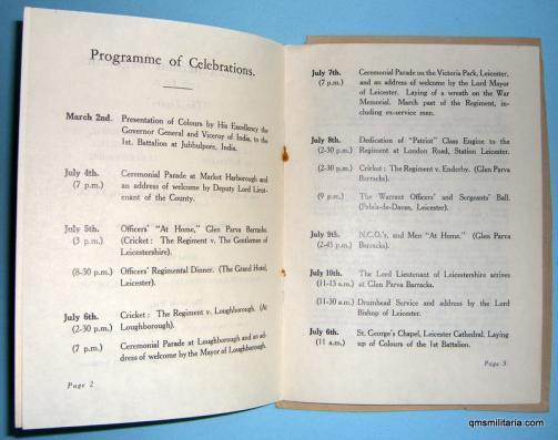 The Leicestershire Regiment 1668 - 1938, 250th Anniversary Celebrations Booklet