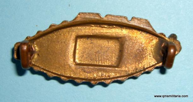 Small brass die struck badge with two original lugs to the reverse. Circa 3.6cm wide and 1.4cm tall. From the Saddam period.