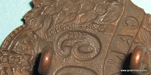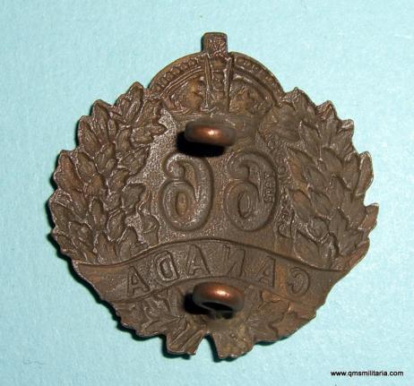 WW1 Canada CEF - 66th Overseas Battalion Canadian Expeditionary Force Bronze Collar Badge - Jackson Bros 1915