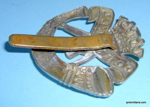 Has seen some service wear as evidenced by some denting to edges of bugle and some polishing to high points. Curved to fit hat and retaining original slider.