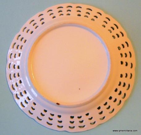 One of a series of plates depicting Boer War generals with attractive fretted lattice work border. Central transfer in very good condition. Unmarked on reverse. No cracks, chips or repairs to plate. The small black mark on the reverse is a firing or kiln mark. Circa 21.5cm in diameter.