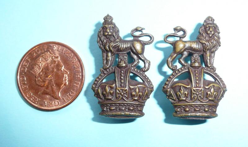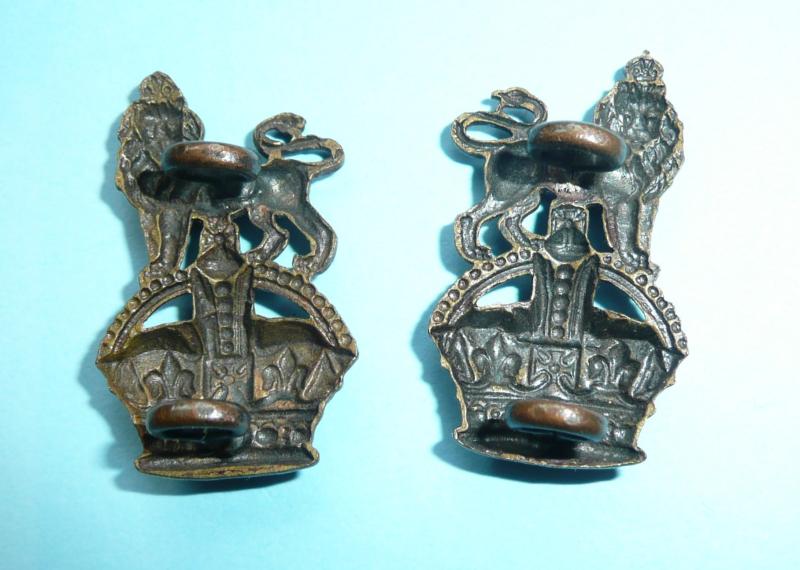 Scarce pre 1914 small pattern collar badges (without scroll). Very good condition matched facing pair with two original lugs to each. 2.8cm tall. Scarce.