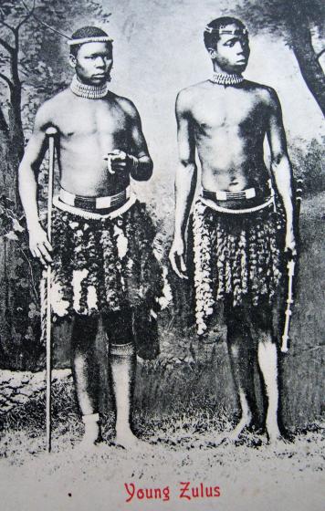 South Africa - Young Zulu Warriors Early Edwardian Sepia Black and White Postcard