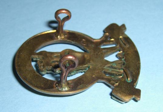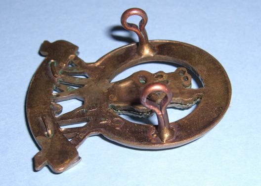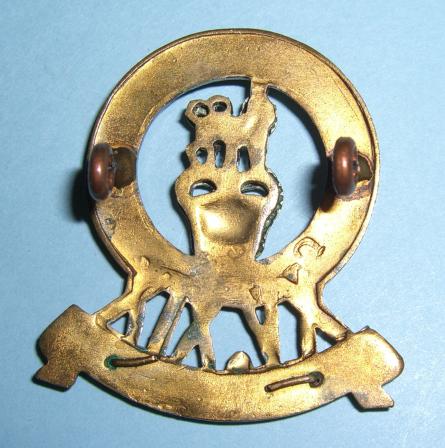 Gilt and enamel officer's cap badge with white metal overlay of crown and lion, with two original long loops to the reverse. Dulled from service wear, enamel undamaged, slight touch of greening to base of crown, otherwise in good condition.