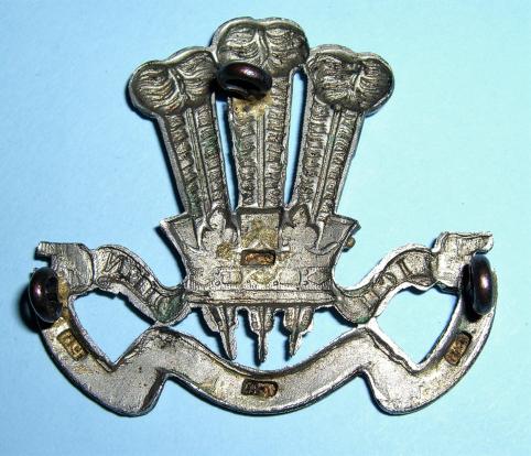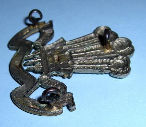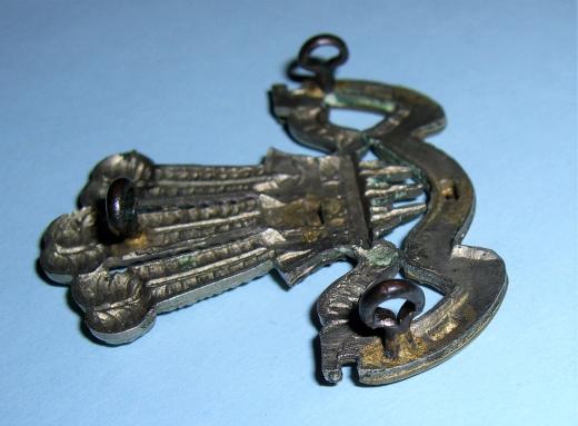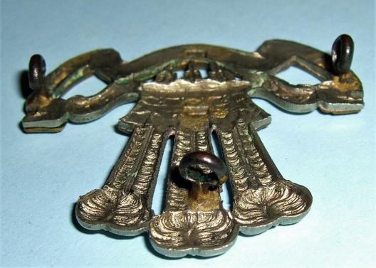 A scarce badge to this Anglo-Boer War cap badge, three dark toned original lugs to the reverse and with four sweat / braising holes to the reverse. Sharp detail, some traces of dried polish otherwise in very good condition. Worn on a rosette on the slouch hat. One of my favourite badges.