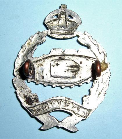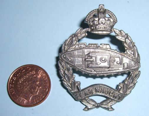 Royal Tank Corps / Regiment ( RTC / RTR) Officers White Metal Cap Badge, King 's Crown
