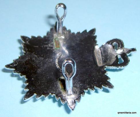 An officer 's two part construction cap badge, some minor service wear, but enamel intact. Circa 4.8cm tall and 4.2cm wide. Two original lugs to the reverse and maker marked JR Gaunt London on reverse. An attractive badge.