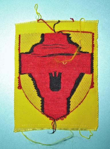 Woven with some minor edge fraying otherwise in good condition. Circa 6.8cm tall and 5cm wide. This pattern worn from 1959 onwards. C23.2