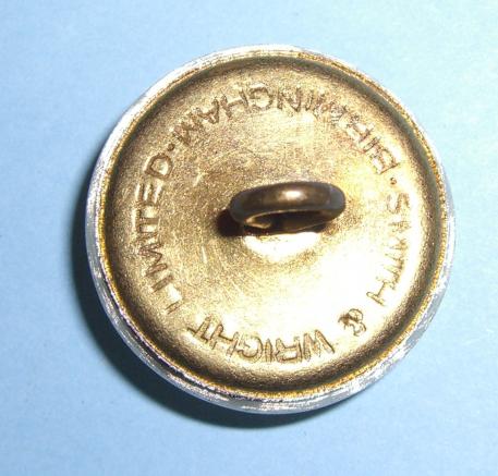 Anodised gold coloured large pattern button, circa 24mm in diameter with fixed shank. Maker marked Smith & Wright, Birmingham. QEII crown. In good condition. Coll.