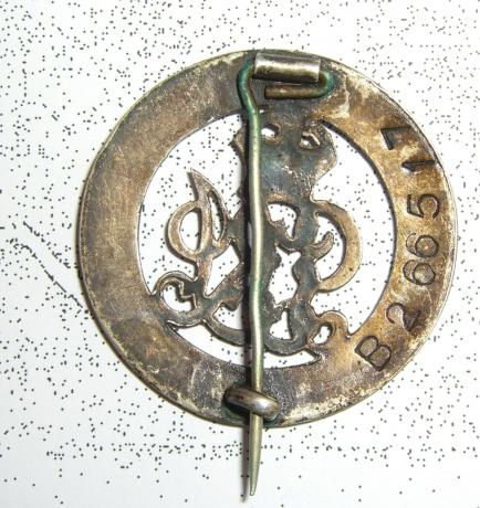 Pte George Turner, initially enlisted the Herts Regiment prior the the outbreak of WW1 in March 1914, but was awarded his medal entitlement with the 4th ( Territorial Force ) Battalion the Essex Regiment. He was entitled to the BWM and Victory Medal (location unknown) and this Silver Wound Badge impressed B266517 for honourable discharge, issued in March 1919 (aged 21 which means he signed up at 16). The CD version of the SWB register confirms that his badge was issued on 14th August 1919, that he served overseas and that he was discharged as surplus to military requirements having suffered impairment since entry into the service ( KR 392 (xvia)). In good condition; the silver is dark toned.