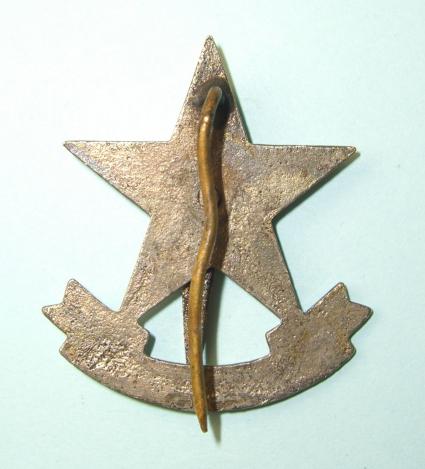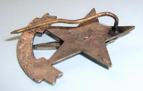 A scarce badge cast in white metal and of two part construction with original securing pin, either for attaching in a turban or pagri band. Circa 4.2cm tall.
