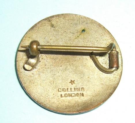 Enamel intact but with minor crazing and some surface scratches from wear. Original pin, fully functional. Maker marked Collins London. Overall in good condition. Comm JoPa